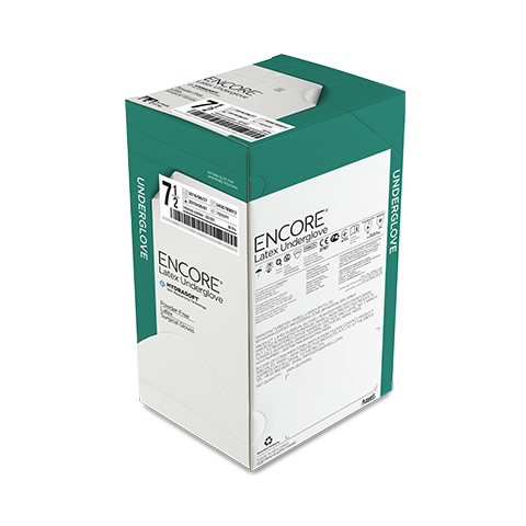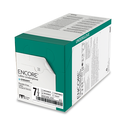 The Ansell ENCORE Underglove Green is a sterile, powder-free latex surgical glove designed for use in conjunction with a second glove during high-risk procedures. It features HYDRASOFT Technology, which combines glycerol and dimethicone to moisturize and protect the skin during extended wear. Its DERMASHIELD Technology interior coating enables smooth donning, even with damp hands or during intraoperative changes. The green color allows for easy breach detection when worn under an outer glove, and its low-friction surface enhances comfort and ease of use. Ideal for surgeries requiring added protection, such as orthopedics, trauma, and cardiac.