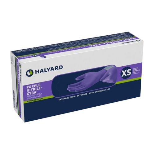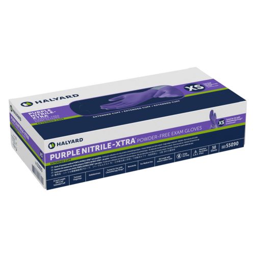 PURPLE NITRILE-XTRA Exam Gloves are the premier choice for healthcare professionals facing moderate to high risks of fluid and chemical exposure. Featuring a 12-inch extended cuff for maximum coverage, these durable gloves are engineered to provide an outstanding barrier against bacteria, viruses, and hazardous chemicals.