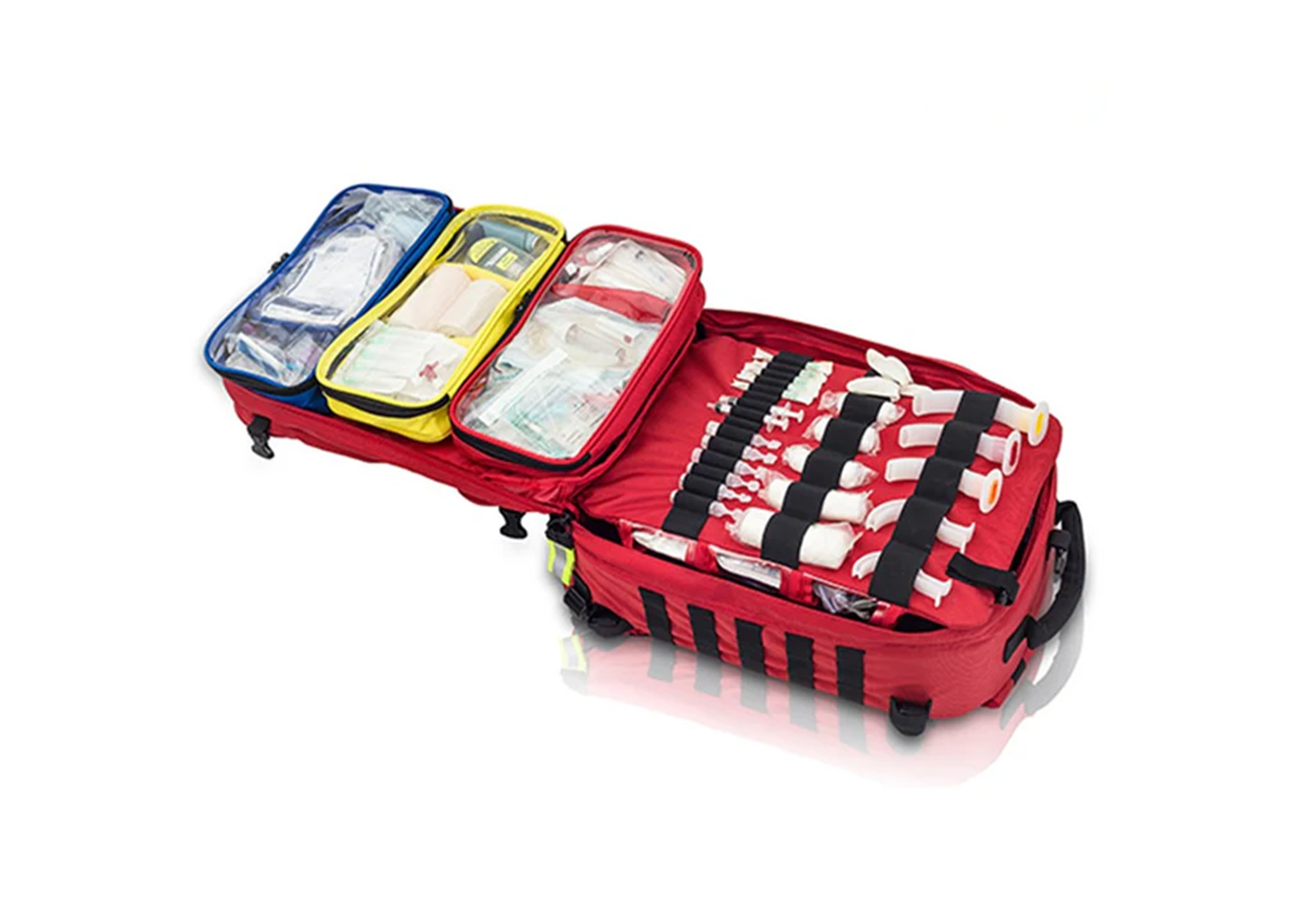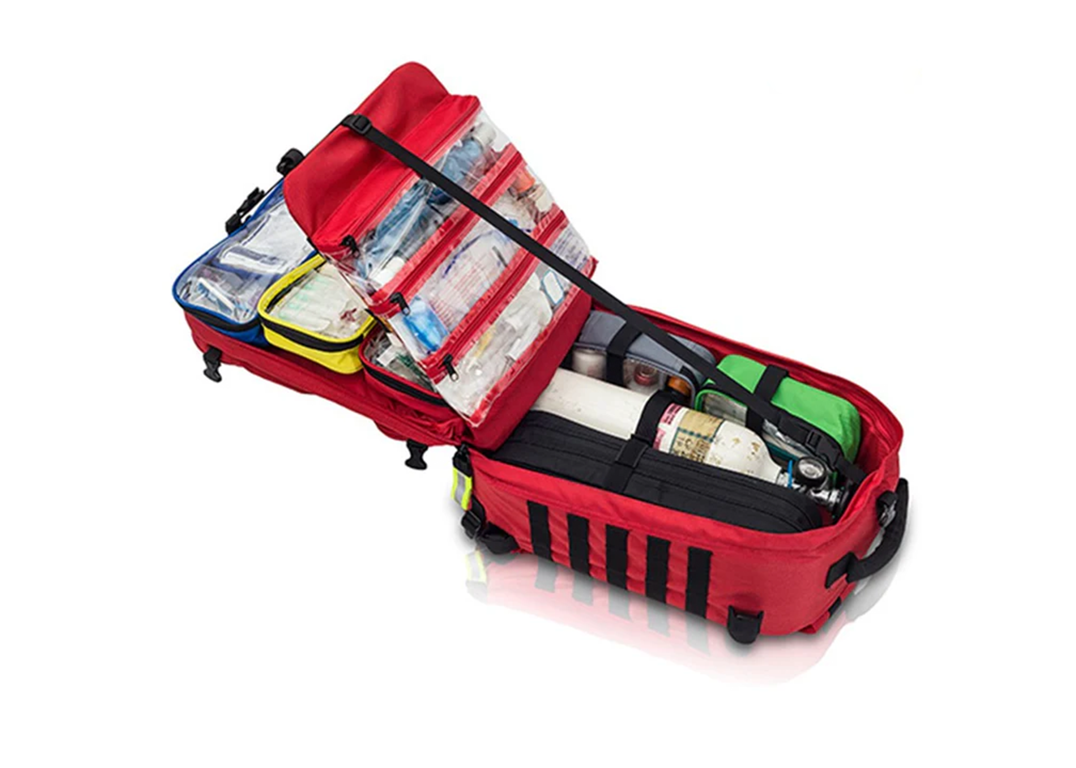 Capable of housing an impressive array of essential medical equipment, the logical and compartmentalized layout of components including removable sealed pouches with transparent lids, allow contents to be located rapidly while ensuring they are adequately protected, even in challenging environments.